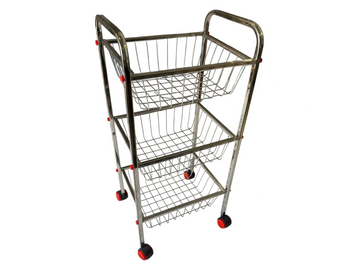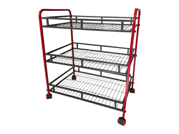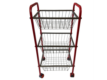 A versatile 3-tier powder-coated steel vegetable trolley with durable wheels—ideal for organized storage in homes, kitchens, shops, and commercial areas.