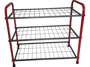 A compact and durable 3-level shoe rack made from powder-coated steel, perfect for organizing everyday footwear in small to medium-sized homes.
